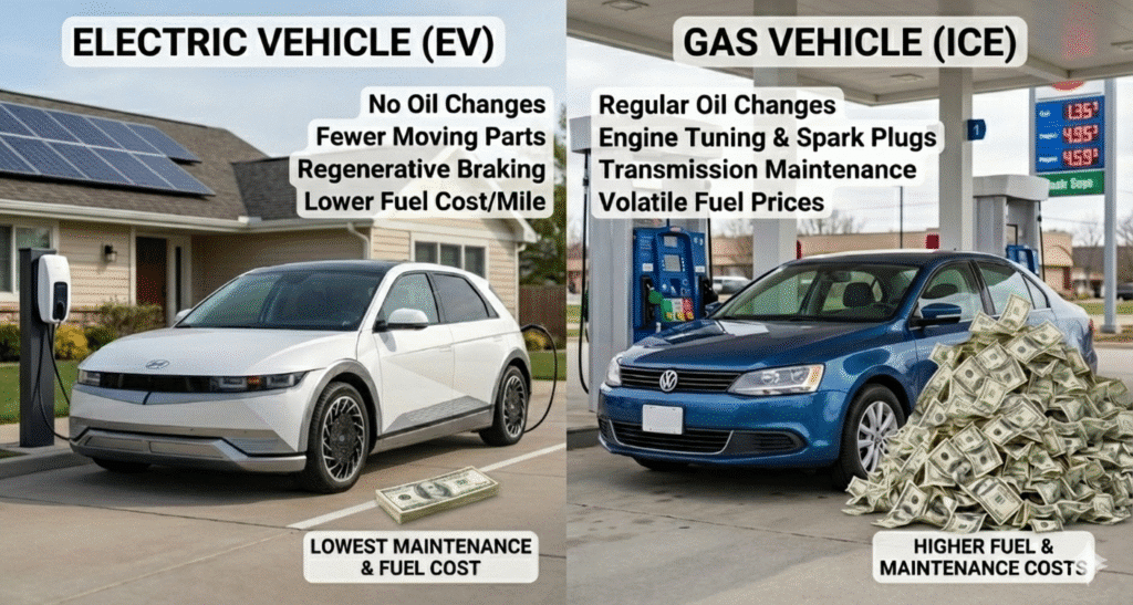 • EVs show meaningful total-cost advantages for many drivers. Independent analysis and consumer guides show EV owners often spend substantially less on fuel and maintenance than gas-powered owners. EV drivers can save up to $2,000 a year while helping utilities operate the grid more efficiently.